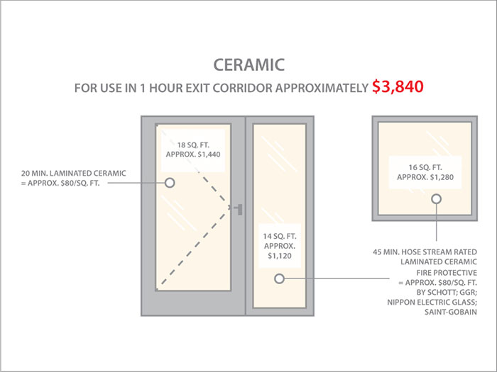 Compare that to using laminated ceramic for the 20 minute door and 45 minute sidelite and opening in the same application: