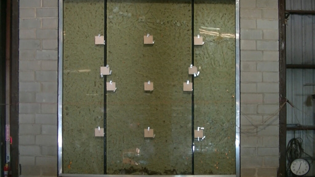 This product was first introduced as an alternative to wired glass, but without much improvement. Ceramics are brittle, and break easily into large shards when impacted. This is why the code also doesn’t allow ceramics in doors, sidelites and other hazardous locations unless it is filmed or laminated to meet CPSC safety standards — adding to its already high cost. While ceramics may not have the embedded wires, it does have a noticeable amber tint. Ceramics cannot limit radiant heat and allows as much as 75 kW/m2 of radiated heat to pass through to the unexposed side at 60 minutes.