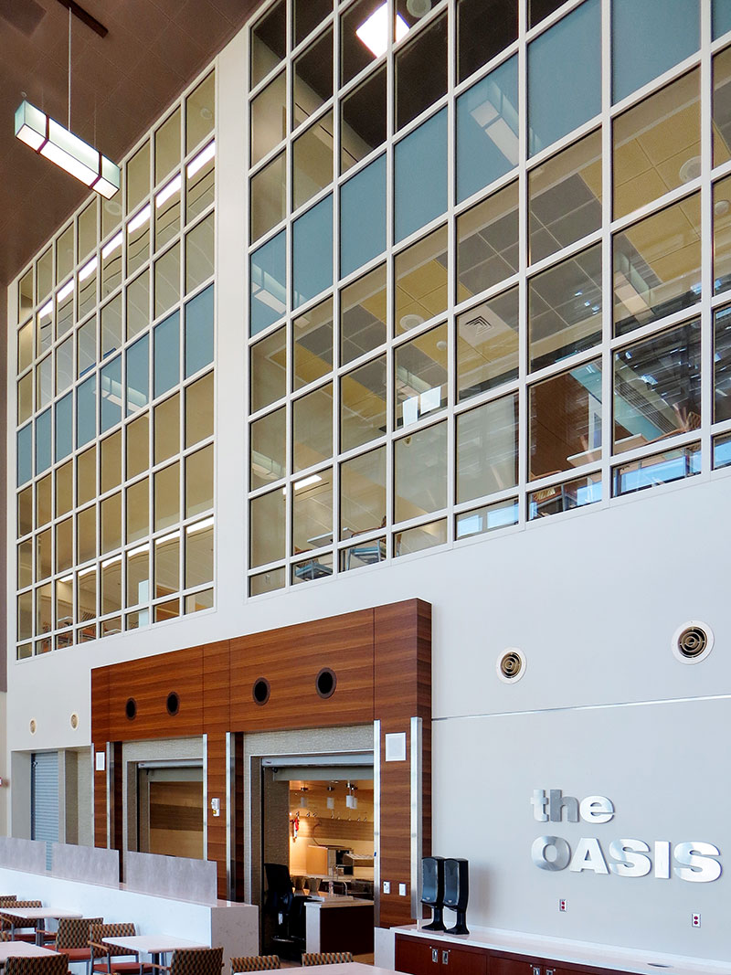 SAFTI FIRST® also supplied SuperLite II-XL 60 and 120 in GPX Architectural Series framing for the stairwells and atriums, which incorporated warm gray spandrel glass for a decorative effect.