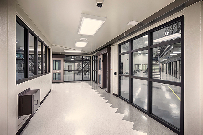 During the design phase, the designers at L. R. Kimball in Ebensburg, PA reached out to SAFTI FIRST® for fire and security rated glazing options. They wanted the glazing system to provide clear, wire-free lines of sight for supervisors to observe the inmates while still providing secure separation, physical containment and protection against forced entry and ballistic attack. Since the glazing system was located in various egress paths and control rooms, it would have to be fire rated as well. Lastly, the architects also wanted a tested and listed system from a single-source manufacturer.