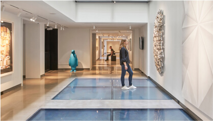 The 21c Museum Hotel features a unique fire rated glass floor application while meeting the 1-hour fire resistive code requirement.