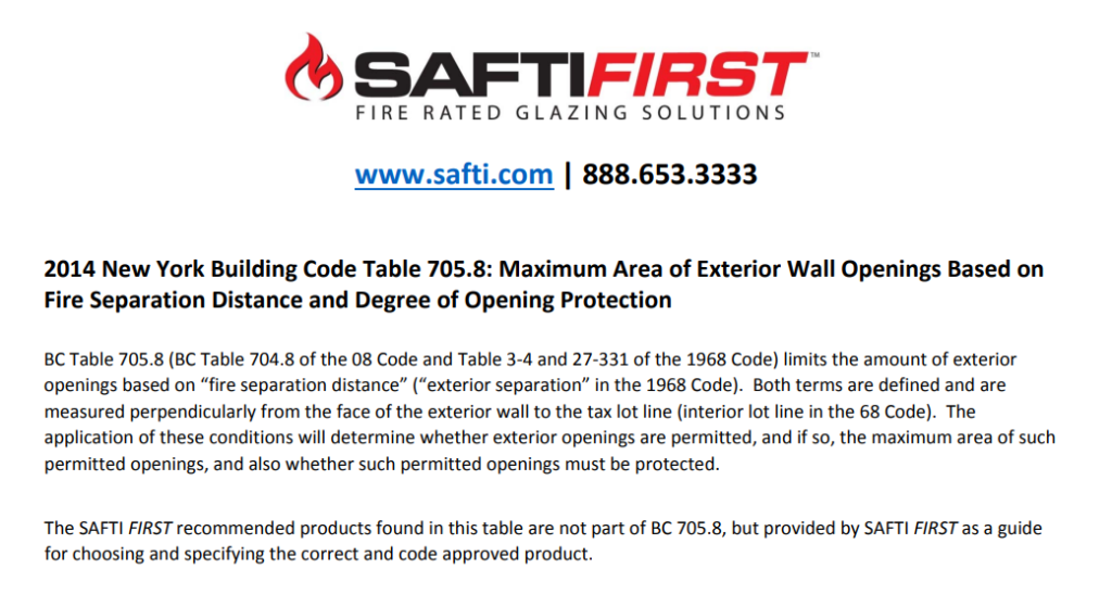 2014 NY Building Code 705.8 Table