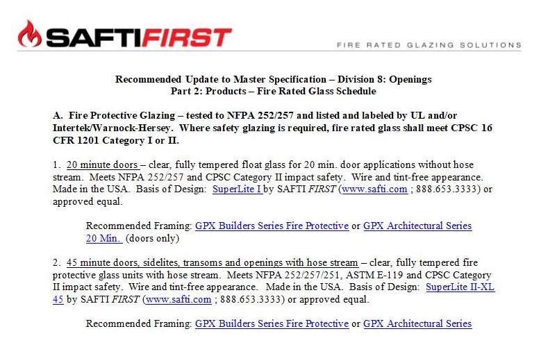 Fire Rated Glass Masterspec Guide